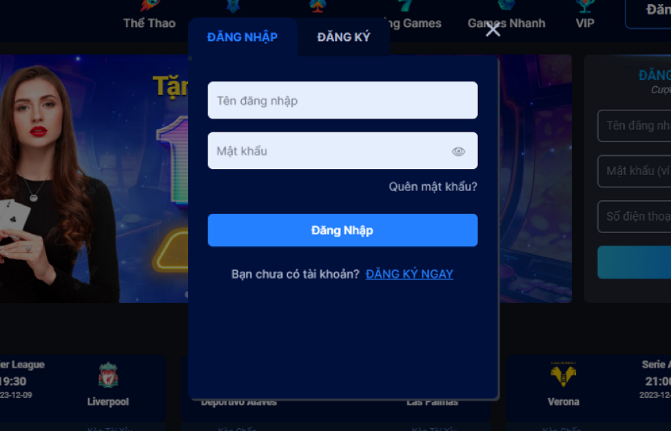 Nếu đang còn ở lại trang chủ, anh em chỉ việc nhấp vào mục “ĐĂNG NHẬP” màu xanh trên giao diện chính. Sau đó điền tên + mật khẩu đăng nhập rồi nhấn lại “ĐĂNG NHẬP” là xong.